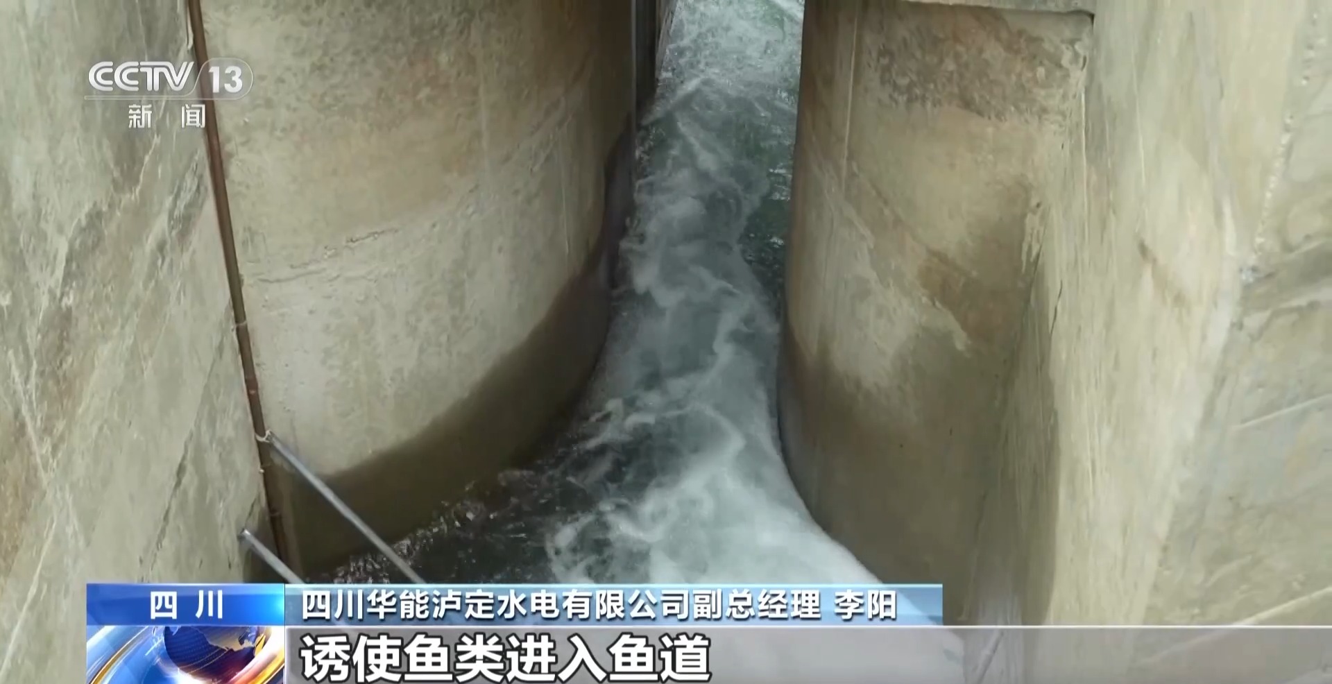 四川华能泸定水电有限公司副总经理 李阳:这是鱼道上行的进口,也是鱼道出水的出口,通过工程措施调整水流的速度,保证水流的连续稳定,激发鱼类的洄游天性,诱使鱼类进入鱼道。