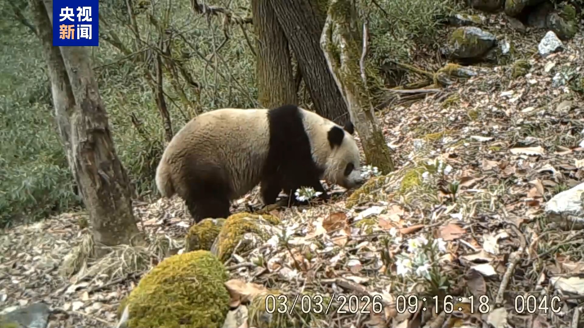 2026年3月3日,红外相机再次捕捉到大熊猫在地面、树干及植被周边反复嗅闻探查的画面。这一行为是大熊猫通过嗅觉识别领地边界、判断同类踪迹、获取环境信息的重要方式,直观展现了野生大熊猫在自然栖息地中的生存习性与环境适应能力。