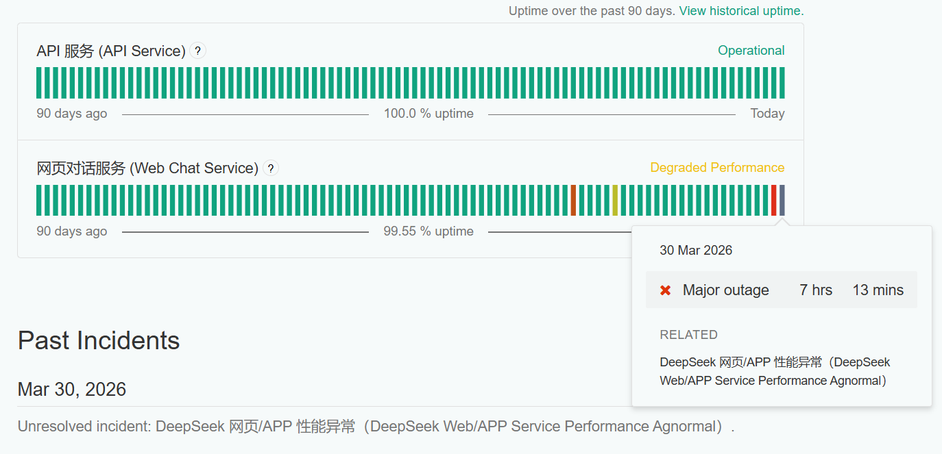 DeepSeek官方服务状态网站截图